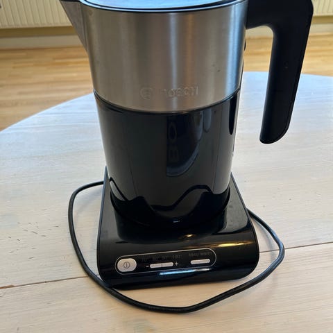 Bosch TWK8613P El kedel i sort og rustfrit stål. Lækker vand kedel i stilrent design med temperatur indstilling fra 70 til 100 grader for perfekt te brygning. Vi har brugt den indtil i dag men sælges da vi har fået quooker i stedet.