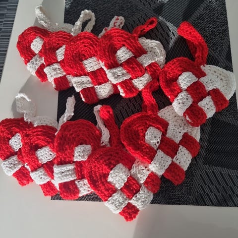 Julehjerter, 6 ophæng med håndlavede hjerter - papirklip.