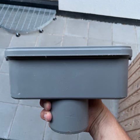 Afløb, Unidrain, NYT hjørneudløbshus, 75 mm, vandret udløb.