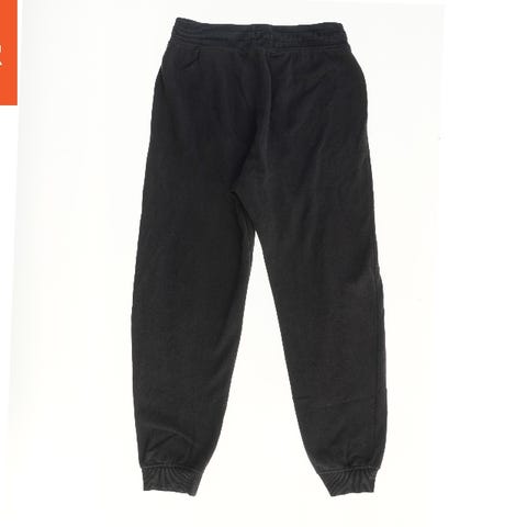 Sort sweatpants med elastisk talje og snørebånd samt lommer på siderne. De har ribkanter ved anklerne.