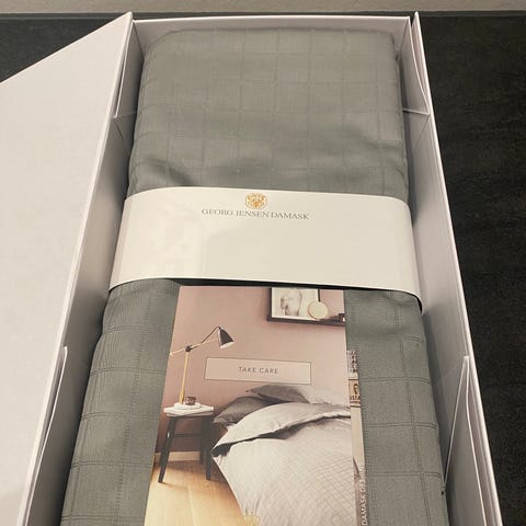 Helt nyt sengesæt i super kvalitet fra Georg Jensen damask i et fint stribet mønster og flot sand farve