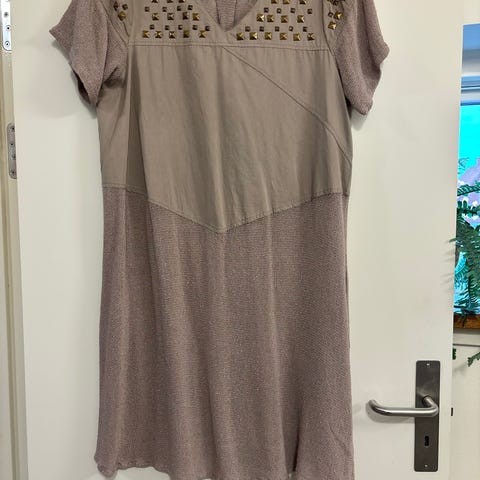 Aldrig brugt. Brystmål 114 cm. Længde fra skulder 98 cm. Lange slidser i begge sider. Gennemsigtig undtagen på øverste del af forstykke.