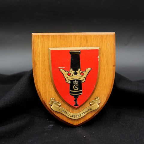 Skjoldet stammer fra en tidligere ansat i det danske søværn og har fungeret som et personligt minde fra internationale togtbesøg og samarbejde under NATO/FN-operationer.