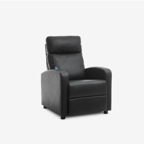 Sort Læder Massagestol med Fodskammel og Fjernbetjening