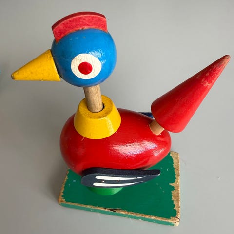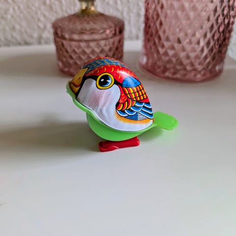 Legetøj, Vintage Schuco plys fugl med optræk fra 1950'erne. Metal ben, næb og øjne. Nøgle medfølger. Meget velholdt. Dog er fjeder sprunget. Een ejer fra røgfrit hjem uden husdyr.