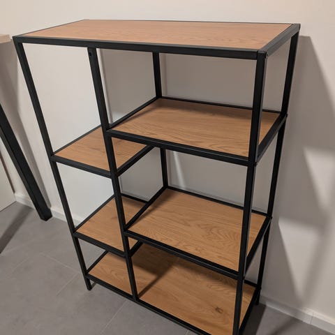 Den kompakte størrelse gør den ideel til mindre rum eller hjørner, hvor du ønsker praktisk opbevaring med et let industrielt præg.