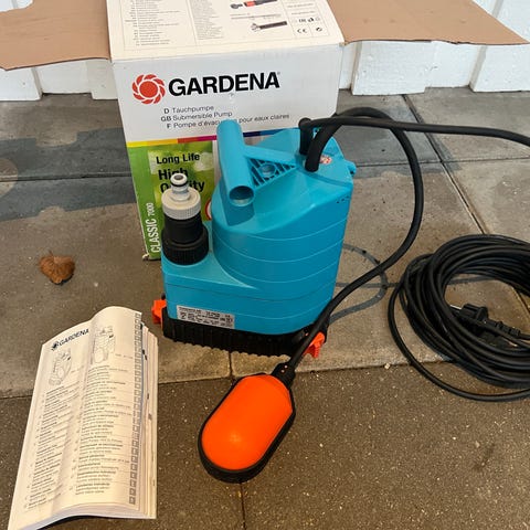 en original Gardena 550 S dykpumpe. Pumpen er i god og fungerende stand (se billeder). Robust model fra Gardena — kendt for høj kvalitet.