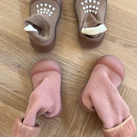 Skoene blev købt til vuggestuen, men mod forventning var der ikke behov for sko i vuggestuen og disse er aldrig brugt - kun pakket ud.