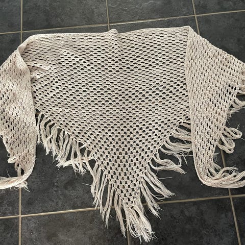 gråt hæklet sjal/tørklæde håndhækllet med vingefang ca 125. cm