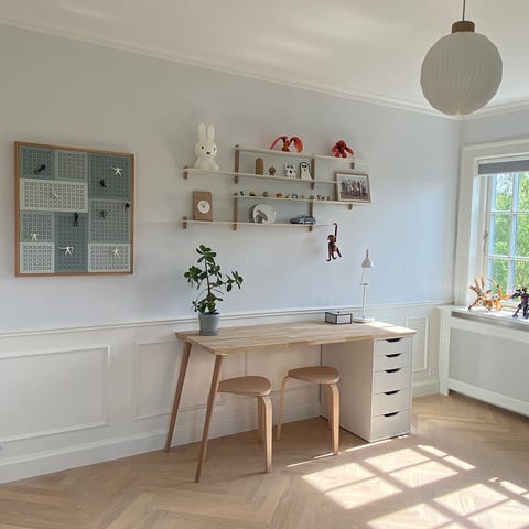 Et originalt skrivebord med hylde, som er meget praktisk på grund af det foldbare multifunktionelle design, da det tilpasser sig til behov, og giver mulighed for at udnytte plads. Dette trendy møbel er ikke nødvendigt at samle. Det kan nemt og hurtigt foldes ud og sammen til snildt at bringe det med overalt, eller til at opbevare det uden at det fylder for meget plads (i et skab, under sengen, bag en dør, bag et møbel, osv.). Det er et meget alsidigt og holdbart skrivebord, som understøtter en vægt op til 50 kg. Det har en hylde, som kan være foldet ud eller foldet sammen, alt efter behov, og som er den perfekte støtte til at placere bøger, krus, højtalere, flasker eller andre brugbare eller dekorerende ting. Takket været dens mål og egenskaber, er det den perfekte løsning til at bruge som arbejdsbord i hjemmet (i soveværelset, stuen, osv.).