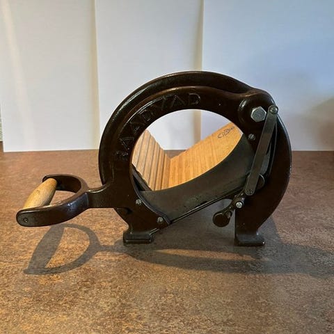 Gammel Raadvad brødmaskine lavet i stand og brugt som pyntegenstand.