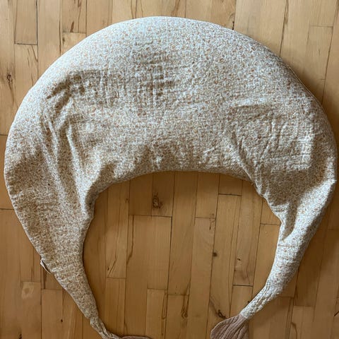 Virkelig god ammepude fra That's Mine i det fineste blomstrede mønster, lavet af bomuld. Pudens form og materiale er designet til støtte under amning og kan også bruges som komfortpude. Skal afhentes på Frederiksberg.