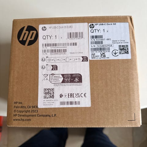 Velfungerende HP USB-C Dock G4 med 90W strømforsyning.