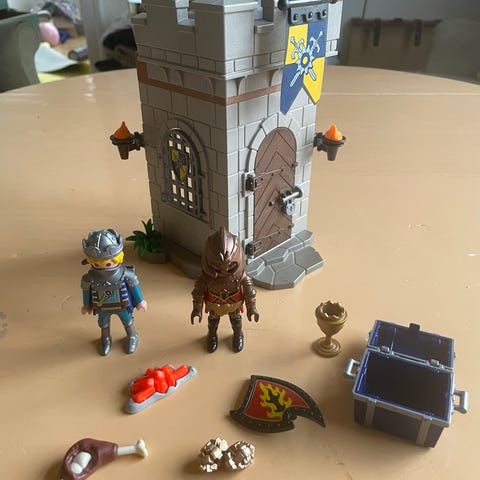 Playmobil 70393 novelmore. 2 riddere og et ildtårn. Der medfølger de ting på billederne. Det er ikke komplet i forhold til original pakke, men det meste er der og i god stand.