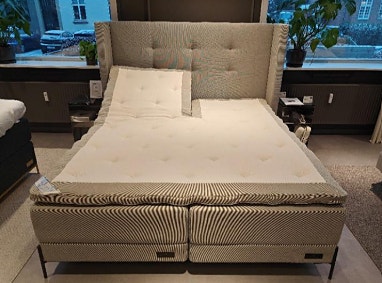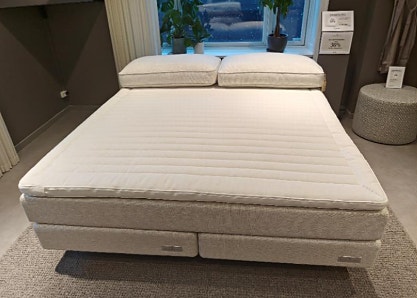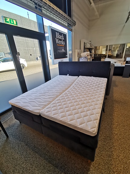Hos SENG Herning skal vi gøre plads til nye modeller, og derfor skal vi af med denne Jensen J5 Kontinentalseng i 180x200cm. Sengen har været udstillingsseng i butikken, og ingen har overnattet i sengen