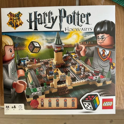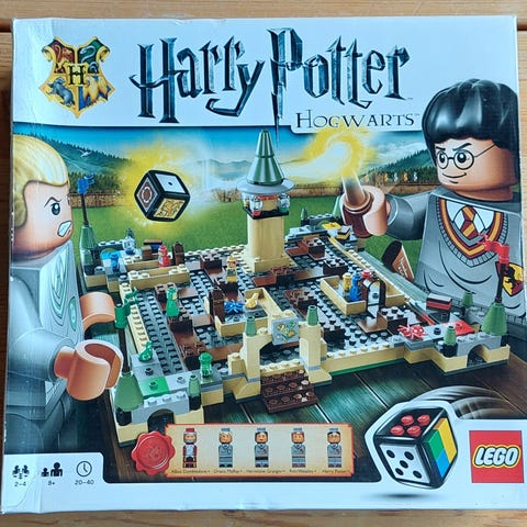 LEGO Harry Potter Hogwarts spil med brætspilsfunktion. Indeholder byggeklodser til at konstruere Hogwarts-slottet og figurer af karakterer fra Harry Potter-universet. Spillet inkluderer en terning og brikker til at bevæge sig rundt på brættet. Velegnet til børn og samlere, der er interesserede i Harry Potter-temaet.