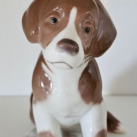 Skt. Bernhards hundehvalp af Niels Nielsen. Figur nummer 1926. Højde cirka 12 cm. Intakt.