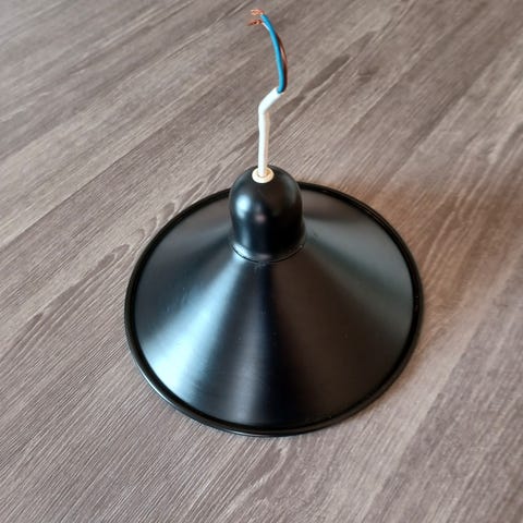 Sælger en pæn, klassisk sort lampeskærm i rund model.