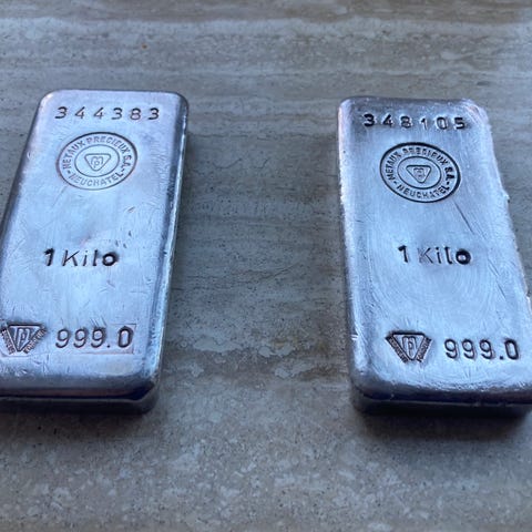 jeg har klippet et hjørne til at lave en ring men også for at bekræfte kvaliteten af Sølvet. Bemærk at Sølvbarrer aldrig vejer præsist, de vejer som regel lidt over, denne vejer stadig 10 oz trods at der er taget et hjørne