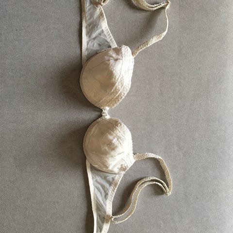 Bh er blevet brugt, men både blonde og satinbånd fremstår som ny. Slid ses på siderne, grundet vask.