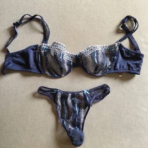 Der er en lille smule slid i form af minimal fnuller på det hvide på trusse og bh (ses ikke, når man har den på) grundet vask.