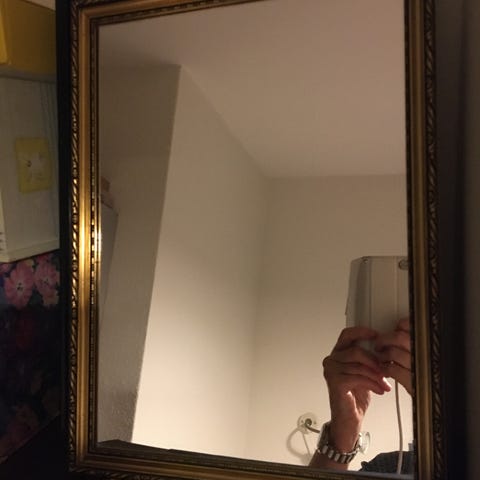 Mirror gold goldmirror glamour Hollywood interior midcentury boligindretning dekoration guld entrespejl