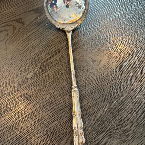 Ske ikke ægte sølv .ca. 20 cm lang. Bud modtages.