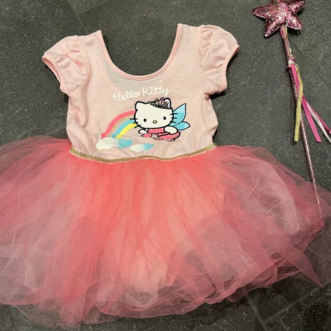 Sparkedragt, str. 74, stribet lyserød, mrk. Hello Kitty, kr. 15,00.