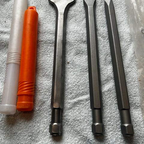 Mejsel, Diverse mejsler til el-hammer, 40 cm, kr. 50 pr. stk.