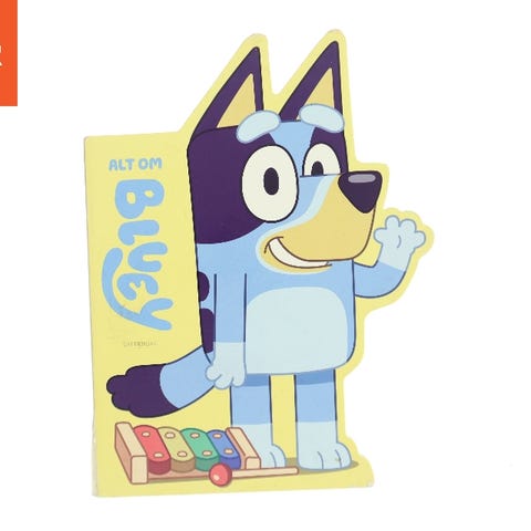 Bluey Babykapløb Børnebog med illustrationer af karaktererne Bluey og venner. Bogen er trykt af Gyldendal og henvender sig til børn. Den indeholder historier og aktiviteter relateret til Bluey-universet.