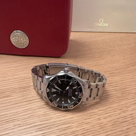 En af de mest eftertragtede Seamaster-modeller, kendt for sit rene, funktionelle og ikoniske design. Ref. 2254.50.00 har den karakteristiske sorte bølgemønstrede skive, brede “sword hands” med kraftig lume og en robust dykkerbezel. Uret drives af det pålidelige automatiske Calibre 1120 og er vandtæt til 300 meter. Den solide stållænke og lave profil gør modellen komfortabel til daglig brug. Et klassisk Omega-dykkerur, elsket blandt samlere for sin æstetik, holdbarhed og stærke identitet.