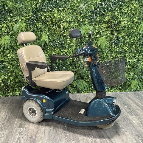 Brugt 4-hjulet el-scooter i en flot grøn farve. Sædet er udstyret med justerbare armlæn og nakkestøtte, så køreturen er dejligt behagelig. Scooteren er nem at betjene og fungerer godt til både bykørsel eller kørsel ude i naturen. Desuden er der monteret en lille forkurv til bagage.