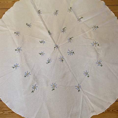 Smuk håndbroderet dug - Hentes i Karise