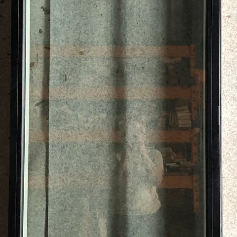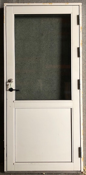 Fabrikat Kastrup i træ/alu det har aldrig været monteret. Der er en bule i højre side af aluet det er med materet glas.