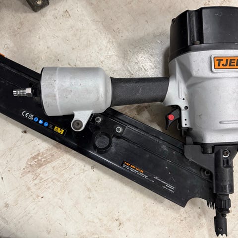 TJEP GRF 34/105 Sømspistol til brug med 34 mm lange søm til rammeopgaver. Værktøjet er designet til effektiv fastgørelse med præcise sømningsegenskaber. Leveres i original emballage.