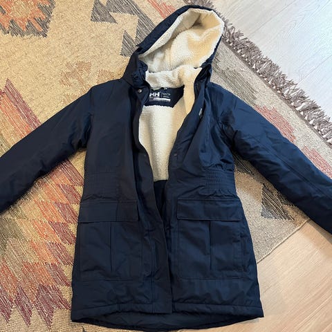 Fin Helly Hansen Børnejakke Blå og orange skijakke i størrelse 116