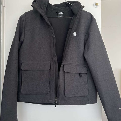 The North Face Jakke i hvid og beige farve, størrelse M til mænd. Jakken kan godt bruges som unisex. Den er designet til udendørs brug og har flere lynlåslommer foran samt i ærmet. Materialet fremstår blødt og isolerende, velegnet til lidt køligere vejr.