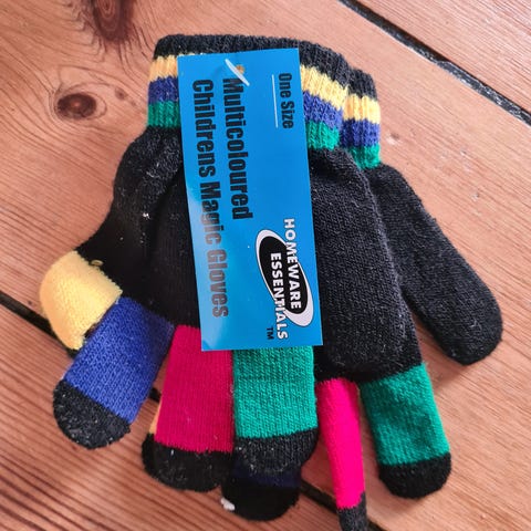 Varme og dejlige børnehandsker str 6-8 år. Købt til min søn men viste sig at være for små. Røgfrit hjem, handskerne står som nye. Nypris er 59 pr par, 60 kr for begge to.