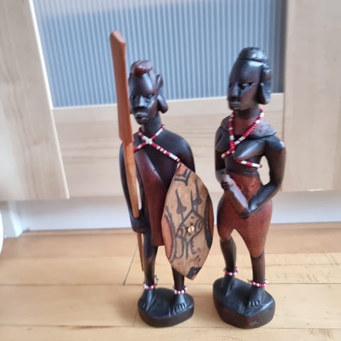 Håndskåret Afrikansk træfigur af en kriger og kone