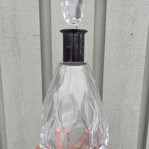 Smuk vintage krystal karaffel med original slebet glasprop og sterling sølv hals fra Carl F. Christensen (CC) Danmark. Stemplet 925S Sterling – Denmark.