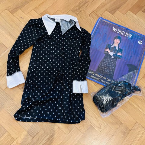 I bought this costume in BR. Dress is in a very good stand, but tights is in a bad stand after washing. We bought separately a wig I specialised store . All together costed 350 dkk. I sell cheaper.