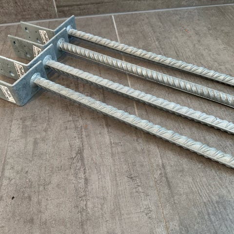 Runde træstolper med galvaniseret fod. Ø12 cm. Længde 270 cm (træ 220 cm - stål 50 cm). 3 stk sælges samlet