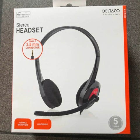 Deltaco WHC85 Whiteline Gaming Headset med LED belyst logo på begge sider.