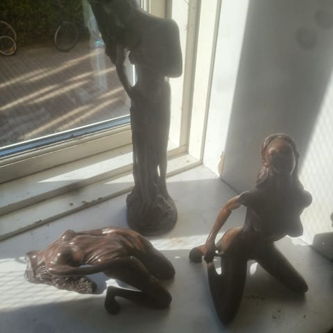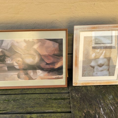 Nøgen dame uden ramme. Købt i start 1980. Kunstner kendes ikke. Højde 92 cm bredde 61 cm.
