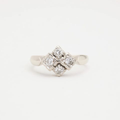 Cluster ring i 14K hvidguld med diamanter (1.12 ct), Str.