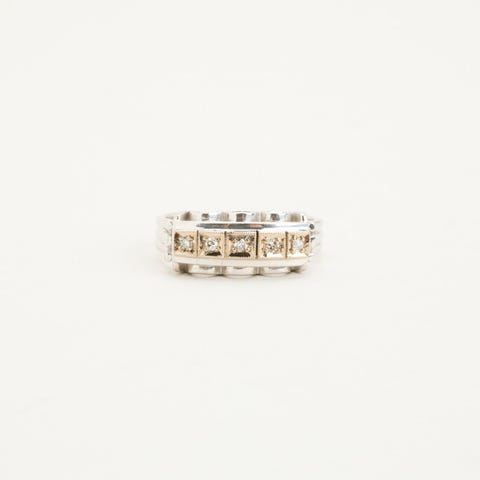 Femstensring i 14K hvidguld med diamanter (0.29 ct), Str.