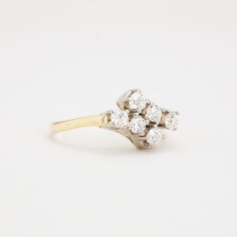 2-stensring i 14K guld og hvidguld med diamanter (0.14 ct),