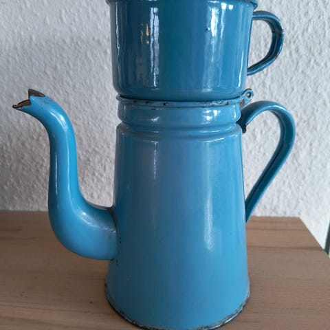 Køkkenudstyr, Kaffekande, Madam blå kaffekande med poseholder, uden låg. 18 cm høj uden låget.