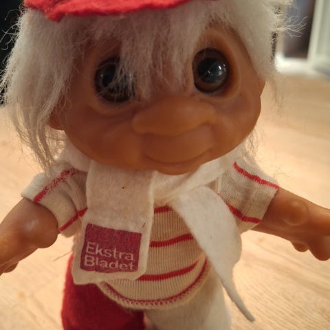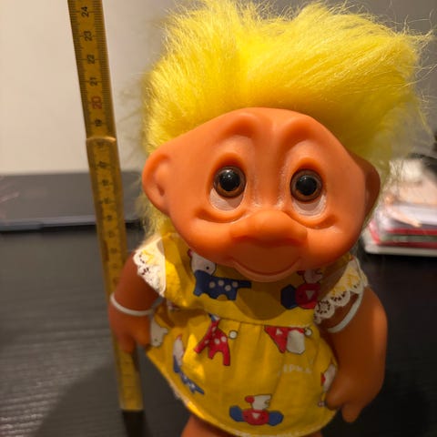 Vintage Troll Dukke Brunt Tøj Sort Hår