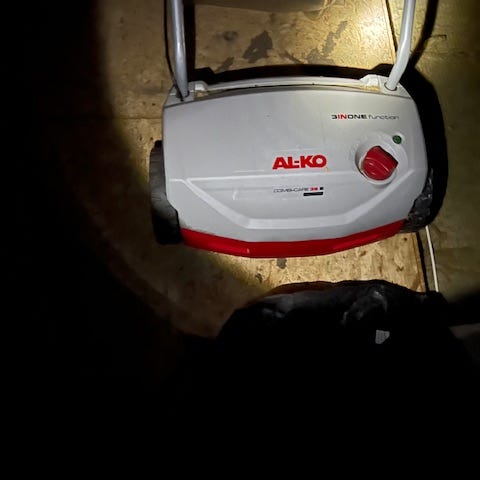 Sælger min AL-KO 38 P Combi Care Comfort benzin-vertikalskærer. Den fungerer perfekt og starter uden problemer. Maskinen kan både vertikalskære og lufte plænen, og der medfølger begge valser.